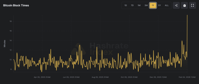 Early this morning, block production slowed enough that the average block time briefly spiked to 19.33 minutes. On the surface, it appears to be a technical issue. Below, it reads like a real-time pulse check of an industry that operates on thin margins, loud fans, cheap power, and a lot of stress.